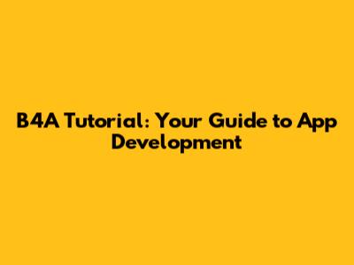 B4A Tutorial: Your Guide to App Development