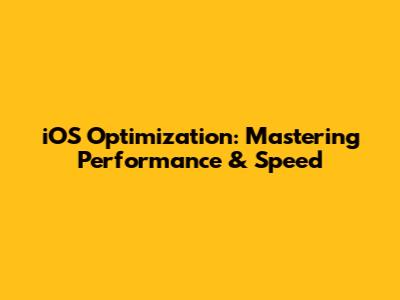 IOS Optimization: Mastering Performance & Speed