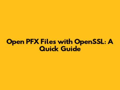 Open PFX Files With OpenSSL: A Quick Guide
