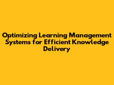 Optimizing Learning Management Systems For Efficient Knowledge Delivery