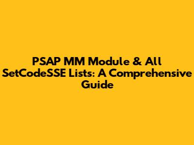 PSAP MM Module & All SetCodeSSE Lists: A Comprehensive Guide