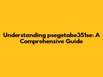 Understanding Psegetabe351se: A Comprehensive Guide